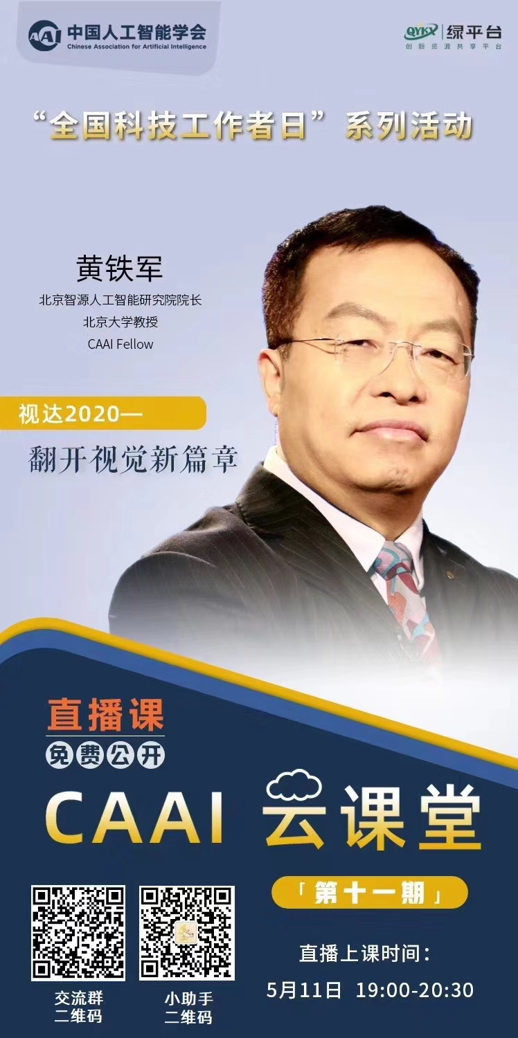 黄铁军教授做客CAAI云课堂第十一期,带来《视达2020—翻开视觉新篇章》精彩直播报告