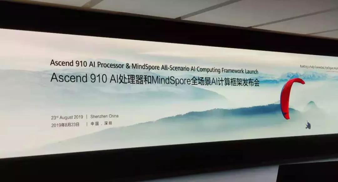 2019 年 8 月 23 日,华为在深圳总部举办的昇腾 910 AI 处理器和 MindSpore 计算框架发布会上,正式发布算力最强的 AI 处理器 Ascend 910(昇腾 910),同时推出了全场景 AI 计算框架 MindSpore,后者将在 2020 年第一季度全面开源。
