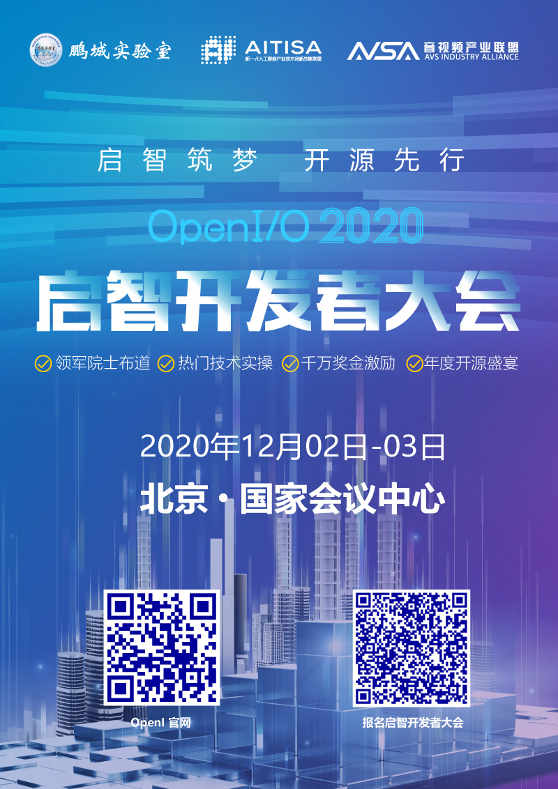“OpenI/O 2020启智开发者大会”以“启智筑梦、开源先行”为主题,由新一代人工智能产业技术创新战略联盟(AITISA)、鹏城实验室(PCL)和