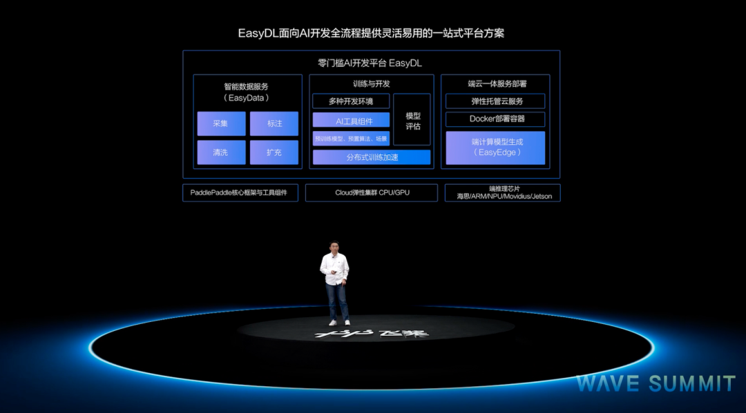 百度飞桨总架构师于佃海、百度深度学习技术平台部高级总监马艳军在峰会上详细介绍了飞桨开源深度学习平台的最新进展。百度AI开发平台部总监忻舟分享了飞桨企业版EasyDL零门槛AI开发平台的全面升级。百度研究院量子计算研究所所长段润尧重磅发布量桨。继2019年11月的WAVE SUMMIT秋季峰会后,短短半年时间,飞桨全平台带来35项全新发布和重要升级,其中包括8大新产品和27项升级。