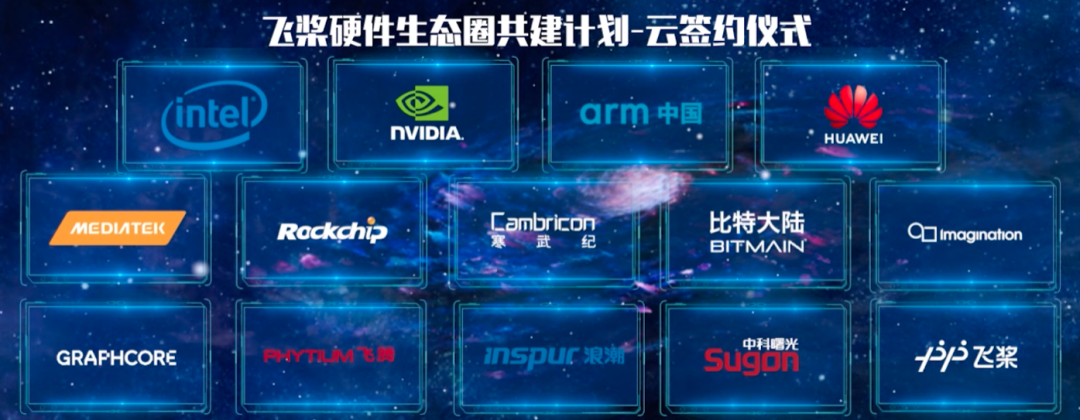峰会上,飞桨联合全球领先硬件厂商英特尔、英伟达、arm中国、华为、MediaTek、寒武纪、飞腾、浪潮、中科曙光等启动共建硬件生态合作圈。同时还分享了近一年飞桨在农林、医疗、工业制造、消费类电子、电力能源、交通、环保等领域的十多个最新案例,切实助力国计民生,促进经济恢复发展。