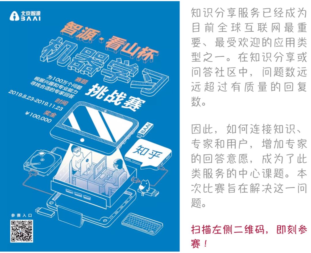 比赛将提供知乎的问题信息、用户画像、用户回答记录,以及用户接受邀请的记录,要求选手预测这个用户是否会接受某个新问题的邀请。