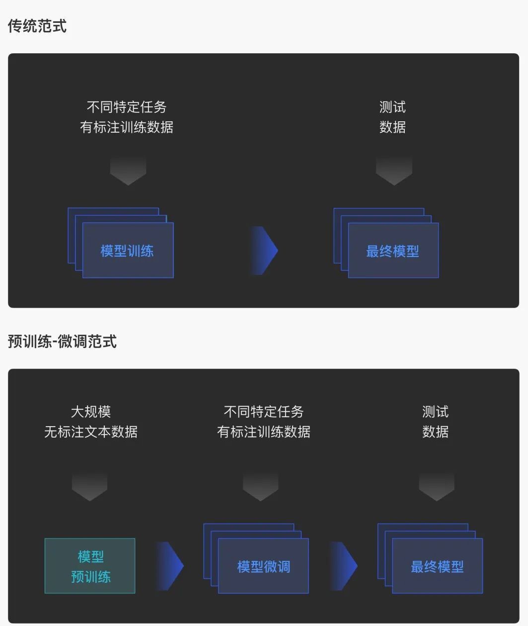 2018年预训练语言模型技术横空出世,形成了“预训练-微调”的新研发范式,极大地改变了上述困局。在这个新范式下,我们可以非常容易地搜集大规模无标注语料,采用自监督学习技术预训练语言模型;然后可以利用特定下游任务对应的训练数据,进一步微调更新模型参数,让该模型掌握完成下游任务的能力。大量研究结果证明,预训练语言模型能够在自然语言处理等领域的广大下游任务上取得巨大的性能提升,并快速成长为人工智能生态中的基础设施。