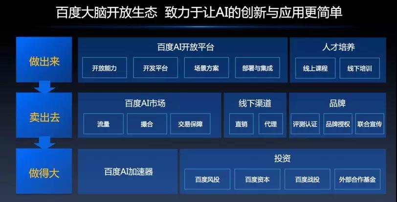 “做出来”、“卖出去”、“做得大”三步恰好组成一个 AI 赋能产业的完整生态,作为 AI 落地的中国典范,这次百度通过百度大脑重新定义了“ AI 平台和生态”。