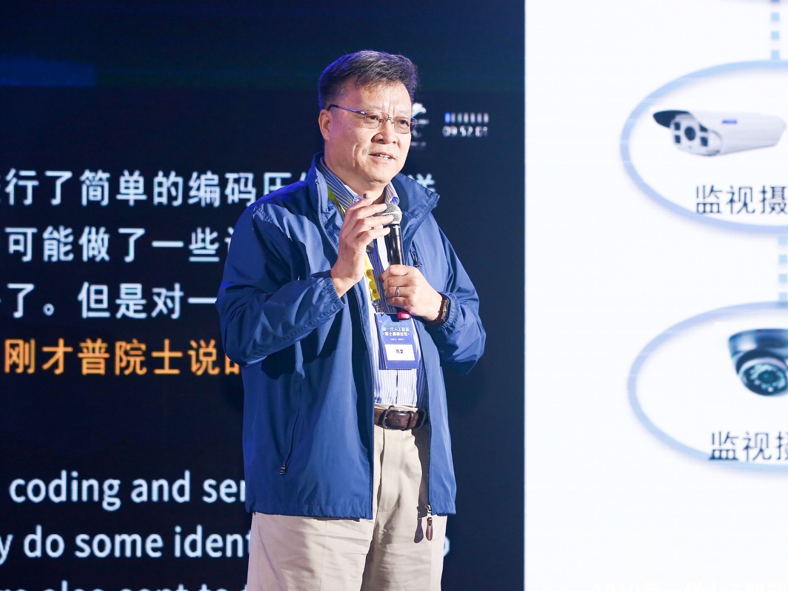 随后,中国工程院院士、鹏城实验室主任高文分享了题为《数字视网膜与云视觉系统演进》的报告。他从云视觉系统面临的挑战出发,介绍了高级生命体视觉通道方面的启发,提出通过数字视网膜设计新的第二代城市大脑。“传统的云视觉系统摄像头只输出一个流,数字视网膜摄像头输出三个流,即视频编码流、特征编码流、模型编码流,三个流混合在一起可以使整个系统更优化。”高文院士介绍道,为了构造这样的数字视网膜,近几年研究人员大力推进四大使能技术落地,鹏城实验室也投入资源,把数字视网膜应用在深圳的智能交通系统上。高文院士指出,数字视网膜技术可以提高云视觉系统效率,大大降低云计算成本。目前的数字视网膜技术处于1.01阶段,下一步将基于脉冲神经网络的思路做数字视网膜2.0。