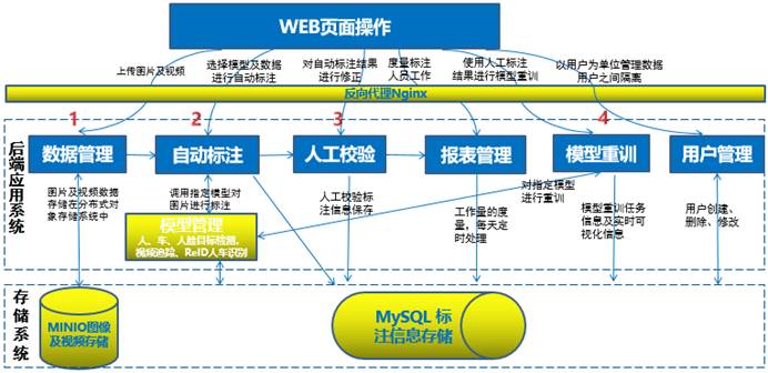 PLabel系统采用纯Web页面操作,数据存储在服务端,操作便捷且能有效避免标注过程中的数据泄露。系统支持多人协同标注与任务管理,用户可根据自身需求接入相关资源,搭建包含数据集管理、自动标注、人工校验、工作分配、模型重训等功能的一体化数据标注与应用系统。