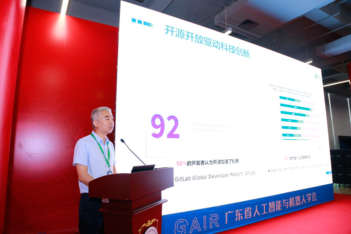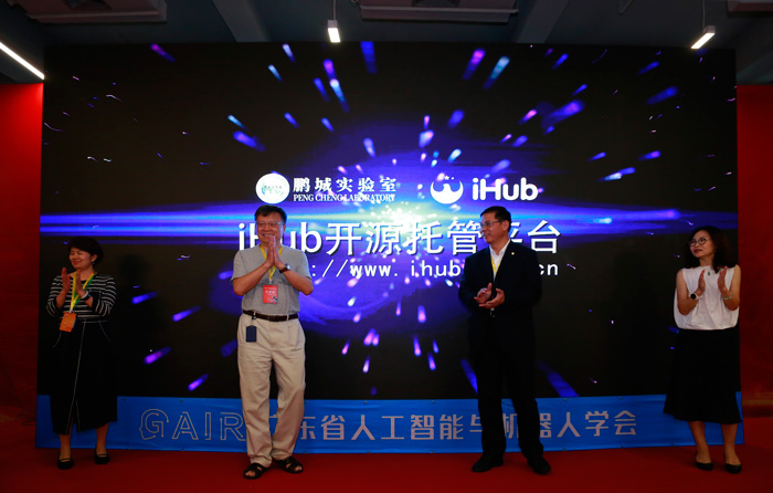 2019年7月18日,广东省人工智能与机器人学会成立大会在深圳鹏城实验室召开,来自北京大学、香港中文大学、华为、腾讯等近40家单位的200余名业界专家和代表出席了会议。在本次大会上,鹏城实验室隆重举行了“iHub开源托管平台”(简称iHub平台,网址:https://www.ihub.org.cn)启动仪式,该平台定位于面向以汉语为母语的开发者,优选、汇聚全球人工智能和RISC-V等开源项目与代码,与国内优势单位国防科技大学Trustie课题组深度合作,力争打造我国规模最大的高水平开源托管平台。鹏城实验室主任高文院士、腾讯副总裁王巨宏女士、广电运通董事长黄跃珍先生、深圳人工智能学会秘书长邹月娴教授等共同启动并见证了这一历史时刻。